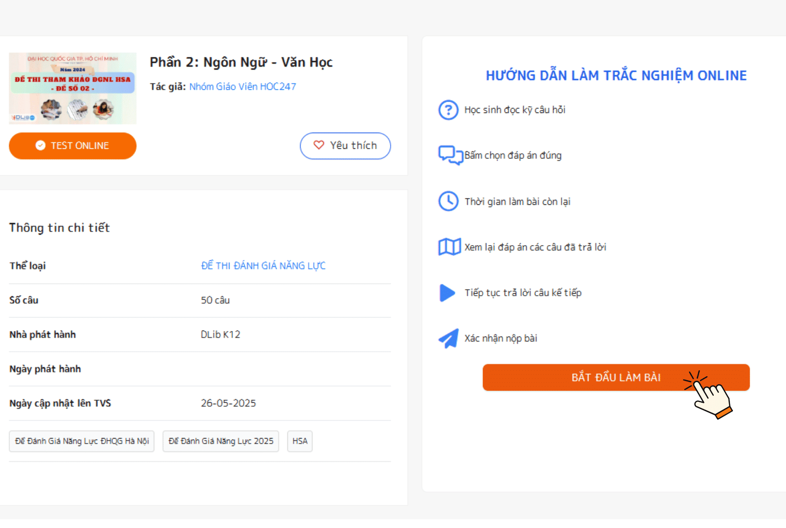 Hãy truy cập Thư viện số, chọn một bài kiểm tra và bắt đầu hành trình chinh phục kiến thức ngay hôm nay.